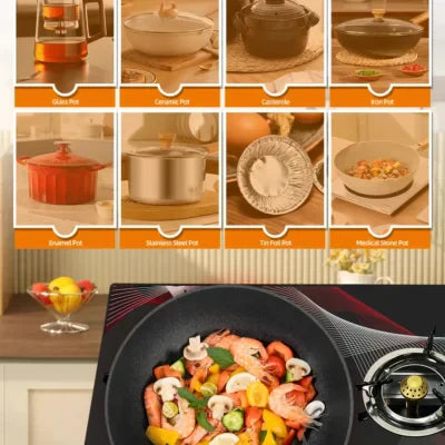 Suportul pentru vase este prevăzut cu dinte tip gheară cu cinci puncte anti-alunecare, ceea ce garantează stabilitate în timpul gătirii. În plus, materialele de calitate și suprafața ușor de curățat fac întreținerea simplă și comodă.