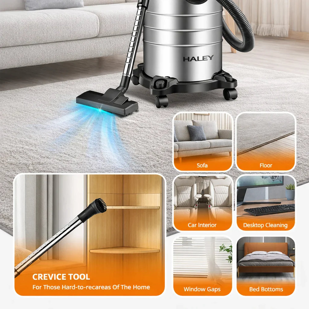 Aspiratorul HALEY HY-9935 este soluția ideală pentru curățenie eficientă și rapidă, atât în gospodărie, cât și în spații comerciale, ateliere sau garaje. Cu o putere maximă de 2800W și un recipient metalic de 35L, acest aspirator profesional face față cu ușurință murdăriei uscate, prafului, dar și lichidelor.
