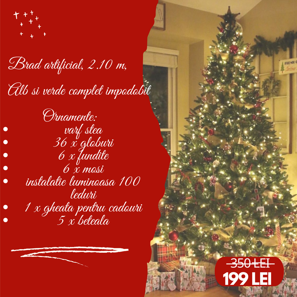 Brad artificial , alb si verde , 210cm inaltime cu suport
