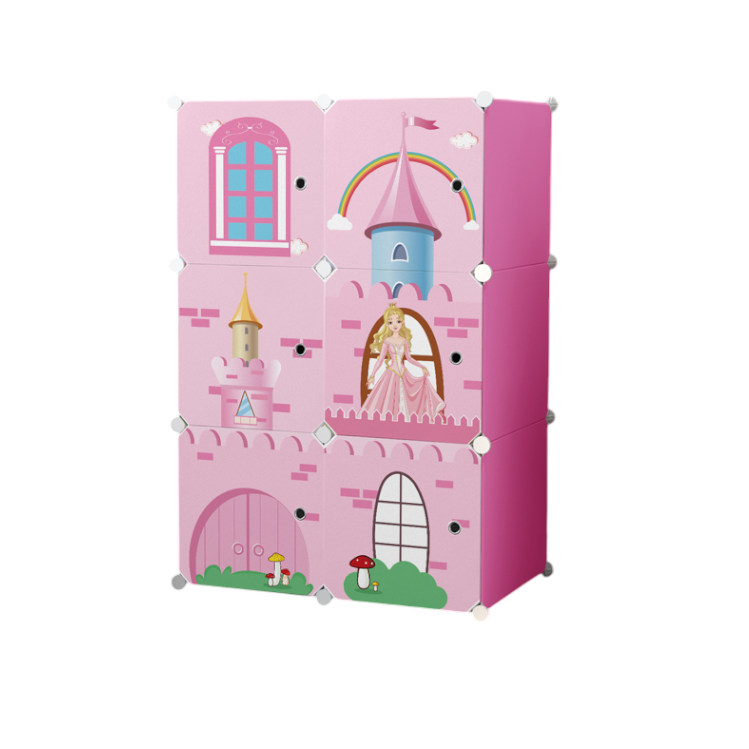 Dulap modular pentru copii, alb, AT PERFORMANCE®, 6 rafturi, durabil, 74X37X110 cm, roz, castel