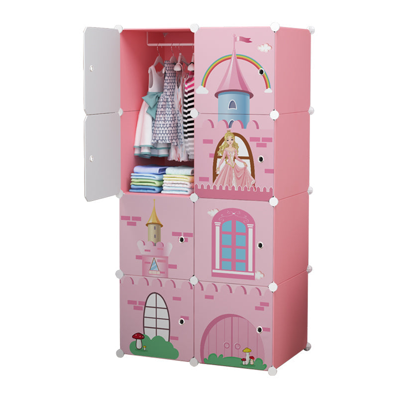 Dulap Modular cu 8 Rafturi pentru Fetițe – Roz cu Castel de Prințese 🌸🏰