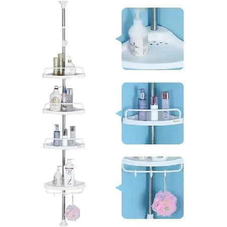 STRUCTURA: Tija rezistenta la rugina se extinde pentru a se potrivi strans, avand patru rafturi triunghiulare cu carlige (pe fiecare raft sunt orificii de scurgere). Este usor de asamblat si reglabila in functie de inaltimea tavanului dvs.