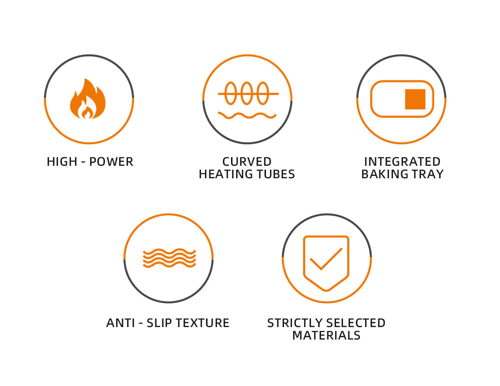 Designul special al tuburilor de încălzire asigură o distribuție uniformă a căldurii, pentru a obține grătare perfecte și un gust impecabil de fiecare dată.