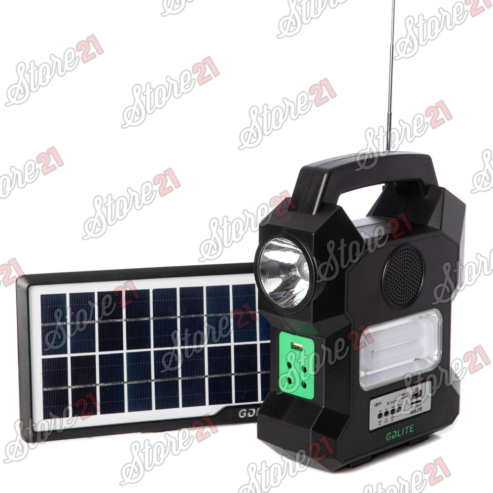 Kit Incarcator Urgente cu Panou Solar GdLite GD8050 Radio FM USB MP3 cu 3 Becuri LED si acumulator 6V 4Ah, panou solar 9V 3-7W.