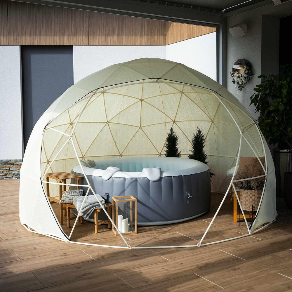Pavilionul de gradina are forma de iglu si poate fi utilizat in curti exterioare, gradini sau terase, indiferent de conditiile meteorologice. Acesta este rezistent la vant cu o viteza de pana la 35 km/h, la radiatii UV si la zapada de pana la 20 kg.
