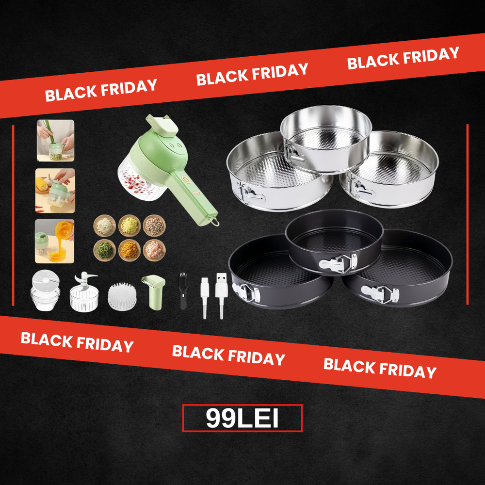 Pachet Tocator si maruntitor electric pentru alimente si legume 4 in 1, plus Set 3 forme de tort
