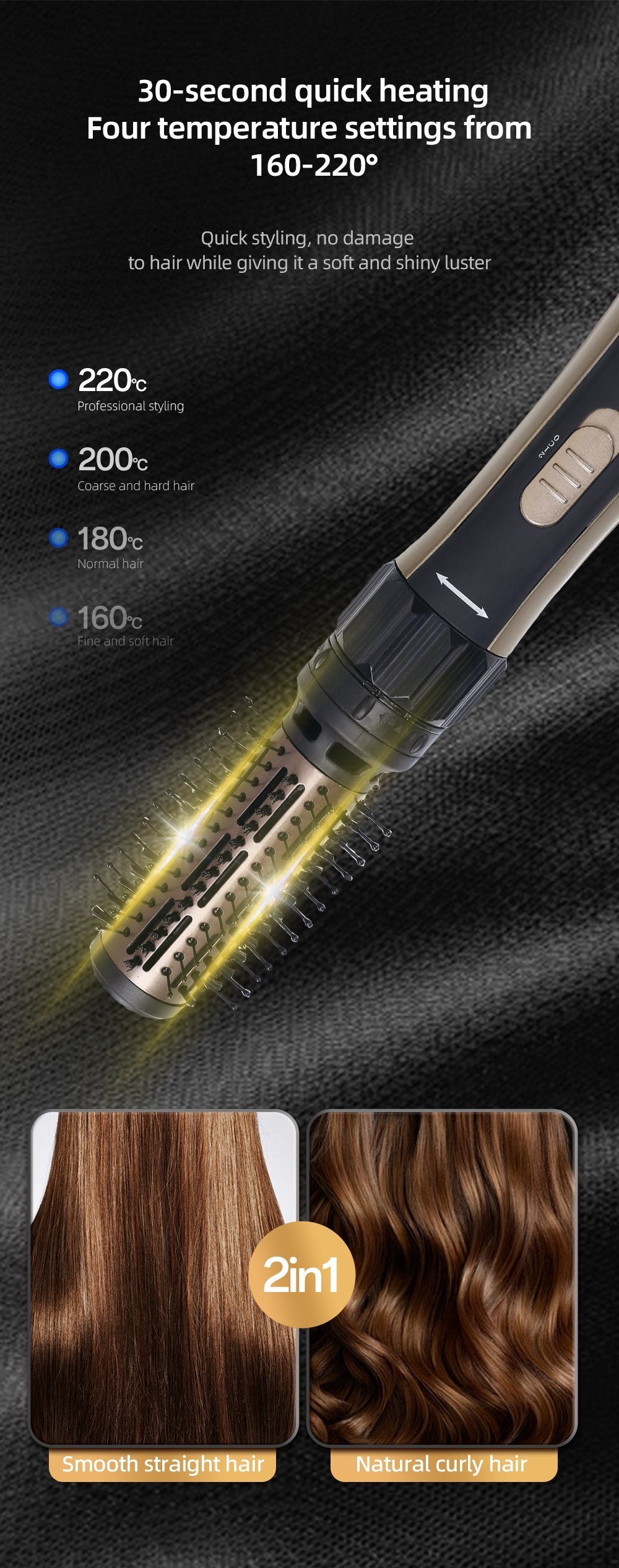Cu HALEY Perie Rotativă cu Uscător, ai la dispoziție un instrument complet pentru păr neted, voluminos și sănătos – în fiecare zi, la tine acasă. Fii propriul tău hairstylist și obține rezultate profesionale fără vizite la salon!