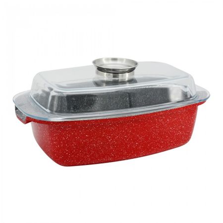 Roaster-ul marmorat Zephyr este realizat din aluminiu turnat de cea mai buna calitate. Acesta are capac din sticla, iar caldura este distribuita uniform pe intreaga suprafata a roaster-ului, astfel incat mancarea este gatita in intregime intr-un timp foarte scurt. Este foarte usor de curatat: se poate spala ori in masina de spalat vase, ori sub jet de apa.