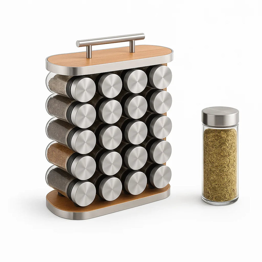 Organizează-ți bucătăria cu stil și funcționalitate maximă cu acest set elegant de recipient pentru condimente! Perfect pentru a păstra condimentele proaspete și la îndemână, setul combină designul practic cu o estetică modernă.