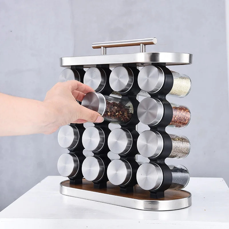 Descriere produs: Set recipiente pentru condimente, 16 piese, cu suport special pe 4 niveluri
