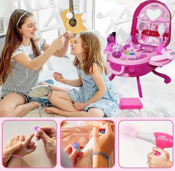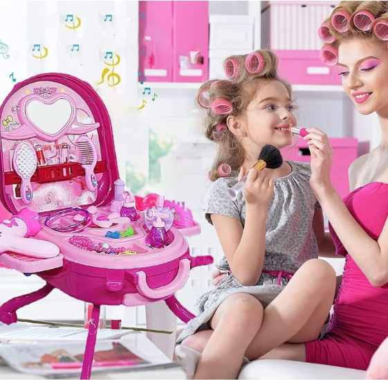 Salvati produsele cosmetice scumpe ale mamelor si dezlantuiti creativitatea copiilor. Setul de machiaj cosmetic sunt jucarii de inalta calitate care arata si se simt ca reale. Tine-ti fata ocupata ore intregi pentru a invata cum sa arate eleganta sau plina de farmec.