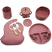 Set 10 piese hranire bebe, diversificare, silicon, baveta, farfurie, bol cu ventuza, lingurita si furculita, cana gustari, lingurita de lemn, si furculita de lemn, fara alergeni, ceasca dreapta, Roz.