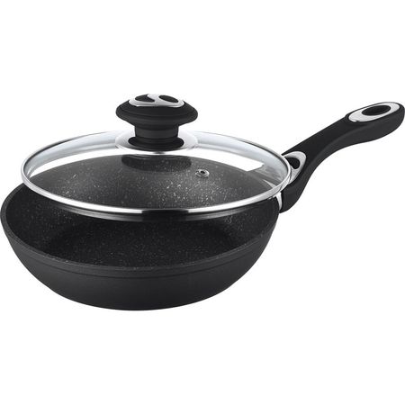 Tigaie aluminiu forjat cu interior marmura si capac sticla, maner silicon, rainstahl, 26 cm