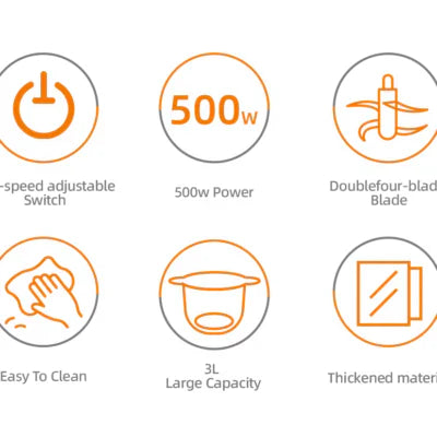 Tocătorul de alimente Haley HY-1238 este partenerul ideal pentru pregătirea rapidă a ingredientelor în bucătărie. Cu un motor de 500W și un vas generos de 3 litri, aparatul este potrivit pentru legume, fructe, carne sau ierburi aromatice.